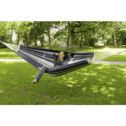 - El tejido denso de 400 g/m2 con una capacidad máxima de carga de 200 kg garantiza la durabilidad de la hamaca