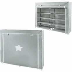 Si el armario textil de la habitación de los niños ya ha tenido su día, puede utilizarse como almacén y armario para zapatos en el pasillo o como estante sin la cubierta de tela. El robusto tejido del armario, que ha sido probado para detectar sustancias nocivas, puede limpiarse y es fácil de limpiar. El armario textil se ha desarrollado en Alemania y es fácil de montar gracias a su sistema de enchufe con Metal l varillas y conexiones de plástico.
