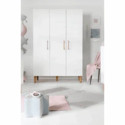 El elegante armario de 3 puertas puede ampliarse perfectamente con otros muebles para bebés y niños de la serie «Mick» para crear una habitación de bebé o infantil completamente amueblada con muebles de sistema que crecen con el niño.