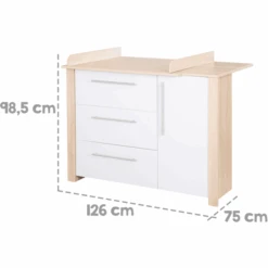 - Dimensiones con cambiador: ancho x fondo x alto 126 x 75 x 98,5 cm